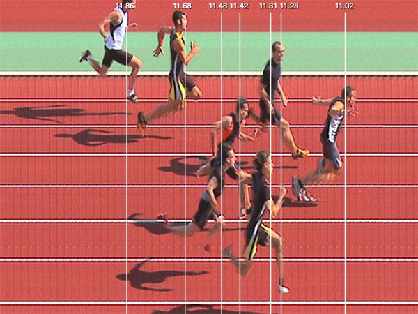 The camera records narrow images of the finish line with a very high frame rate. When the recording has finished the image slices are blended into one large image that shows a continuous time when scrolling the image. The technique is identical to that of the FAT systems used at all national and international competitions. More info can be found in the Photo Finish Guide.